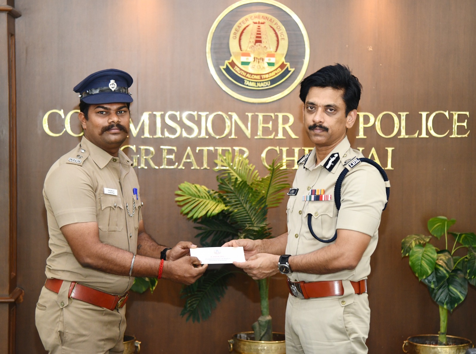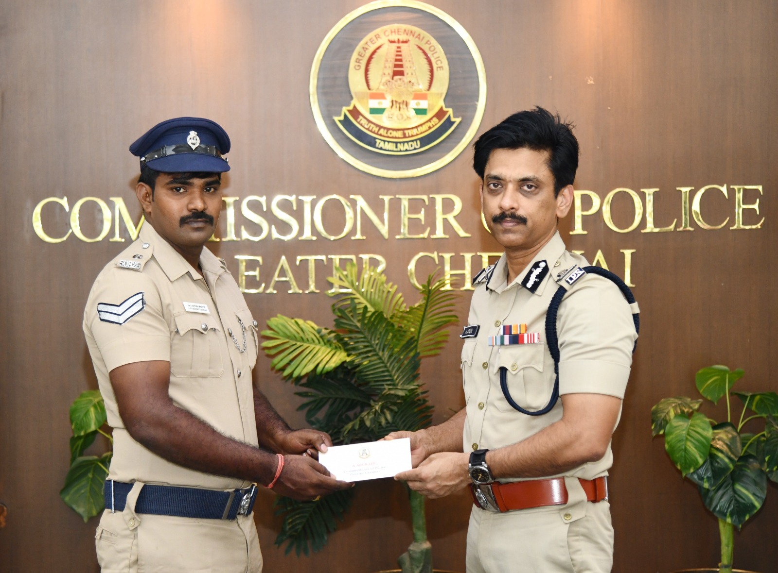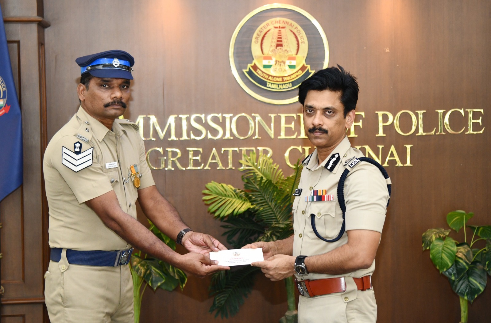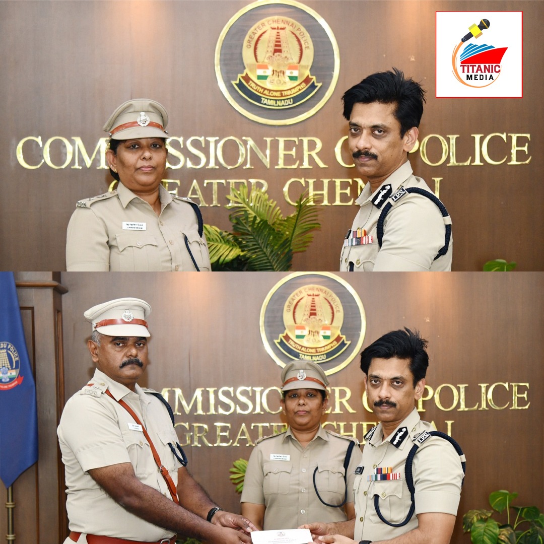 சென்னை வேப்பேரி பகுதியில் போதைப்பொருட்களுக்கு எதிரான நடவடிக்கையில் சிறப்பாக பணிபுரிந்து சுமார் 108.8 கிலோ கஞ்சாவை பறிமுதல் செய்து சீரிய பணியாற்றிய கீழ்பாக்கம் காவல் மாவட்ட துணை ஆணையாளர் தலைமையிலான குழுவினரை கமிஷனர் அருண் நேரில் அழைத்து பாராட்டி வெகுமதி வழங்கினார்.