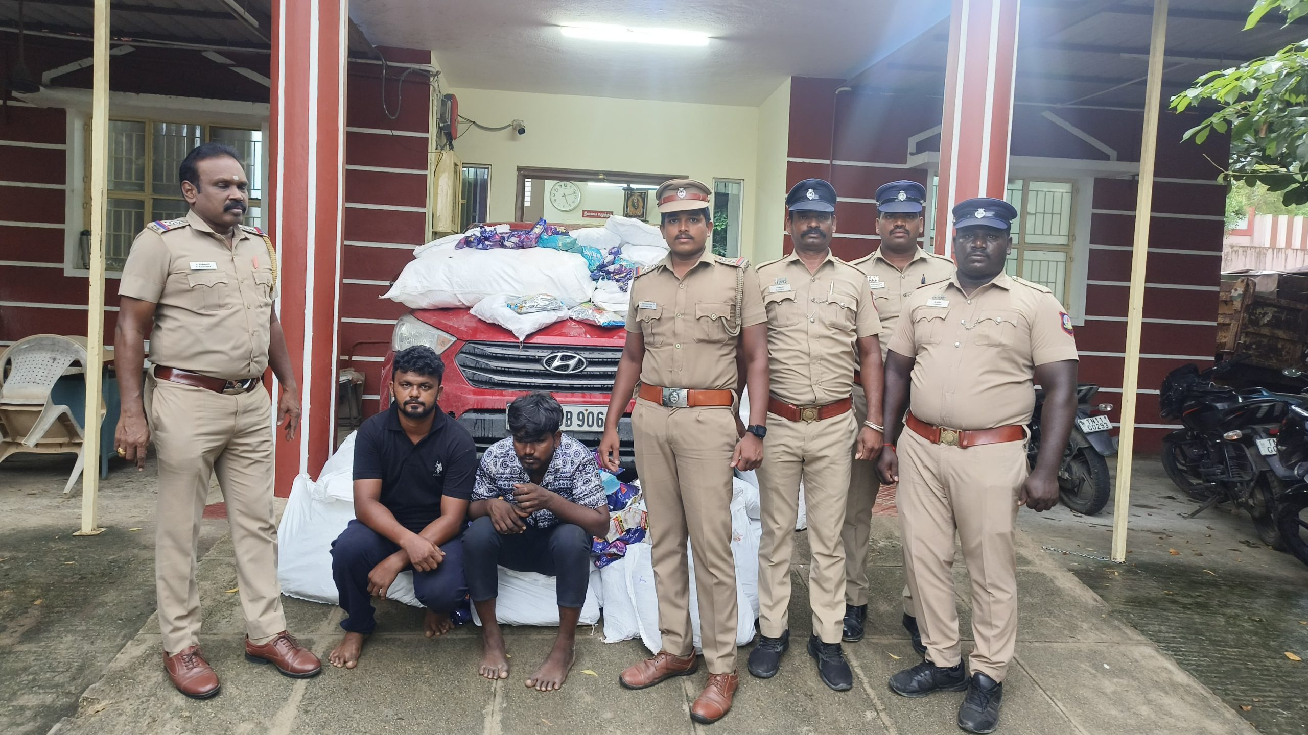 இன்று 25.09.2024 காலையில் 6.30 மணியளவில் புதுநல்லூர் சோதனை சாவடி அருகில் தனிப்படையினர் வாகன தனிக்கையில் ஈடுபட்டிருந்தனர். அப்போது புதுநல்லூரிலிருந்து சோமங்கலம் நோக்கி வந்த டி.என். 10-பிபி-9066 என் பதிவு எண்கொண்ட கிரேடா காரை தனிப்படை போலீசார் நிறுத்தி சோதனை செய்தனர். இதில் காருக்குள் இருந்த 49.2 கிலோ ஹான்ஸ், 25.2 கிலோ கூல் லிப், விமல்- 133.5 கிலோ ஏ1 15.75 கிலோ ஸ்வாகத் கோல்டு 60.3 கிலோ, ஆகியவை பதுக்கி வைக்கப்பட்டிருந்தன. அவற்றை கடத்தி வந்த ராஜ்குமார் (27), கணேஷ் பாபு (23) ஆகிய இருவரையும் போலீசார் கைது செய்தார்கள். விசாரணைக்குப் பின்னர் இருவரும் கோர்ட்டில் ஆஜர்படுத்தப்பட்டு சிறையில் அடைக்கப்பட்டனர்.