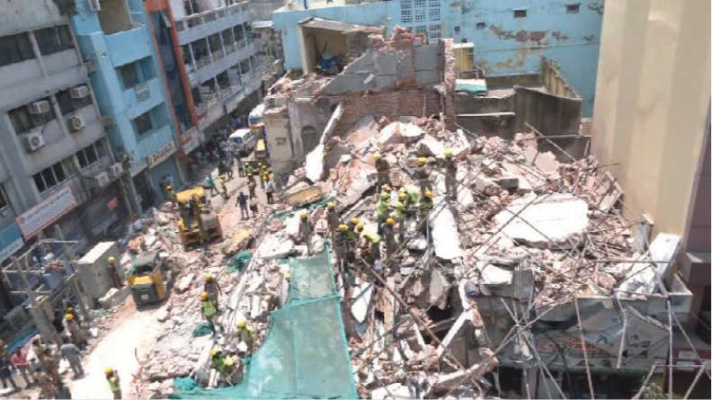 சென்னை பாரிமுனை பிராட்வேயில் பழமையான 4 மாடி கட்டிடம் இன்று இடிந்து விழுந்ததில் உள்ளே இடிபாடுகளில் சிக்கிக் கொண்ட சிக்கியுள்ள 4 பேரை மீட்கும் பணியில் தீயணைப்பு மீட்புப் பணியினர் தீவிரமாக ஈடுபட்டு வருகின்றனர்.