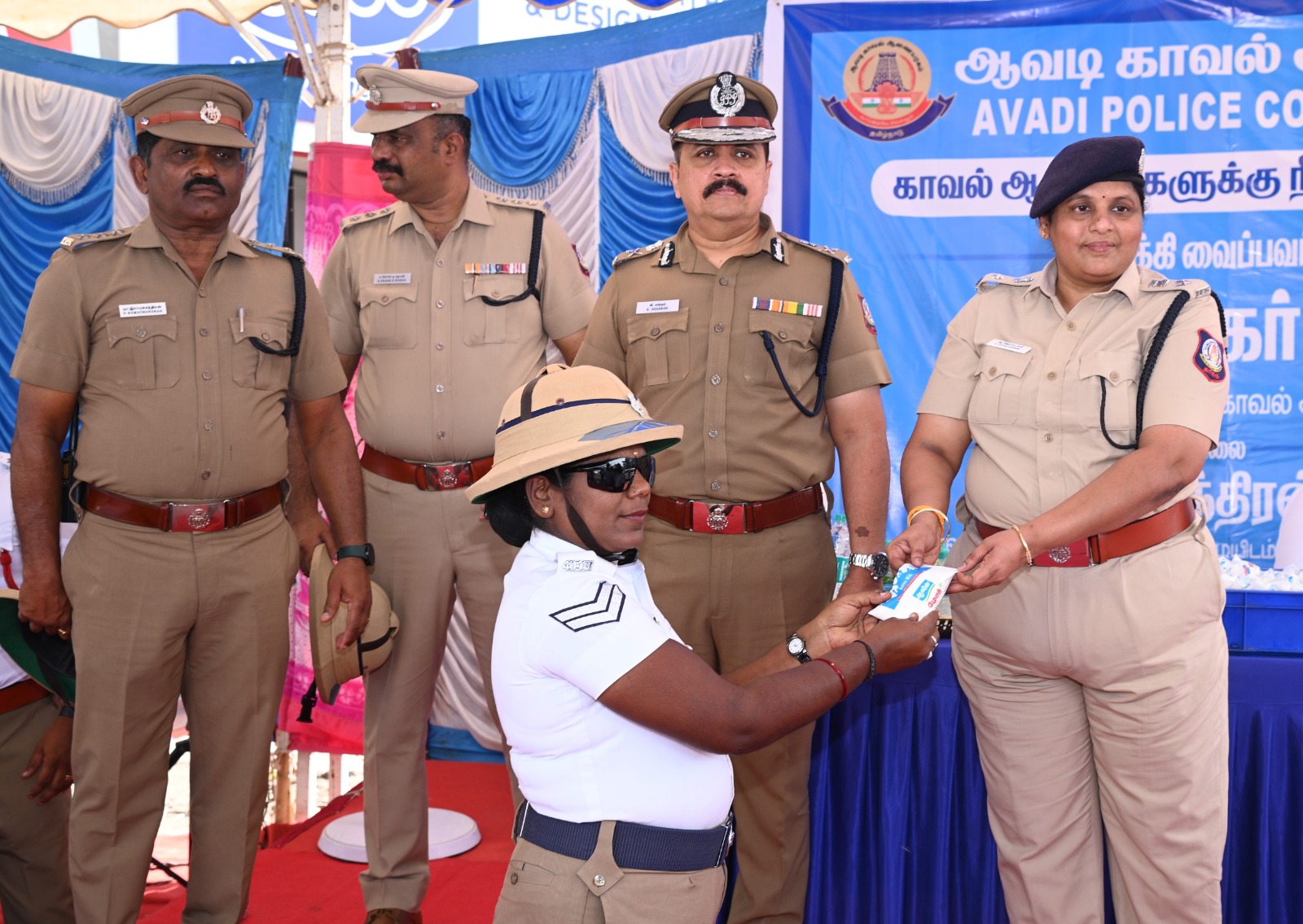 கோடை காலம் தொடங்கி இருப்பதால் வெயிலில் பணி செய்யும்  போக்குவரத்து காவலர்களின் நலனை  கருத்தில் கொண்டு, இன்று (01.03.2024) அம்பத்தூர் ஆவடி சாலையில் (சிங்கப்பூர் ஷாப்பிங் சந்திப்பு) போலீசார் மற்றும் பொதுமக்களுக்கு நீர் மோர் வழங்கும் நிகழ்ச்சியை ஆவடி காவல் ஆணையாளர் சங்கர்தொடங்கி வைத்தார். போக்குவரத்து காவல் பணியில் ஈடுபடும் காவலர்களுக்கு வெயிலின் தாக்கத்திற்கு ஏதுவாக சிறப்பு தொப்பி (Pith Hat), கூலிங் கிளாஷ் உள்ளிட்ட வெயிலின் தாக்கம் குறைக்கும் உபகரணங்களை  போக்குவரத்து காவலர்களுக்கு வழங்கினார்.