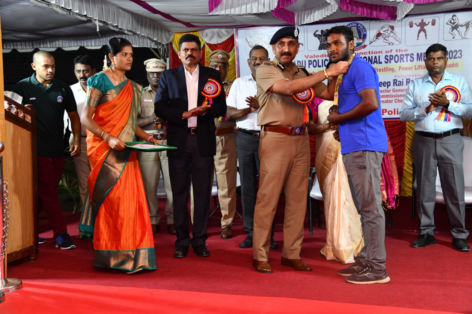 இன்று (09.09.2023) மாலை எழும்பூர், இராஜரத்தினம் மைதானத்தில் நடந்த பரிசளிப்பு விழாவில் சென்னை நகர போலீஸ் கமிஷனர் சந்தீப்ராய் ரத்தோர் கலந்து கொண்டு, 63வது தமிழ்நாடு காவல் மண்டலங்களுக்கு இடையேயான Wrestling Cluster-2023 போட்டியில் வெற்றி பெற்ற அணிகளுக்கு பதக்கங்கள், கோப்பைகள் மற்றும் சான்றிதழ்கள் வழங்கி பாராட்டினார்.