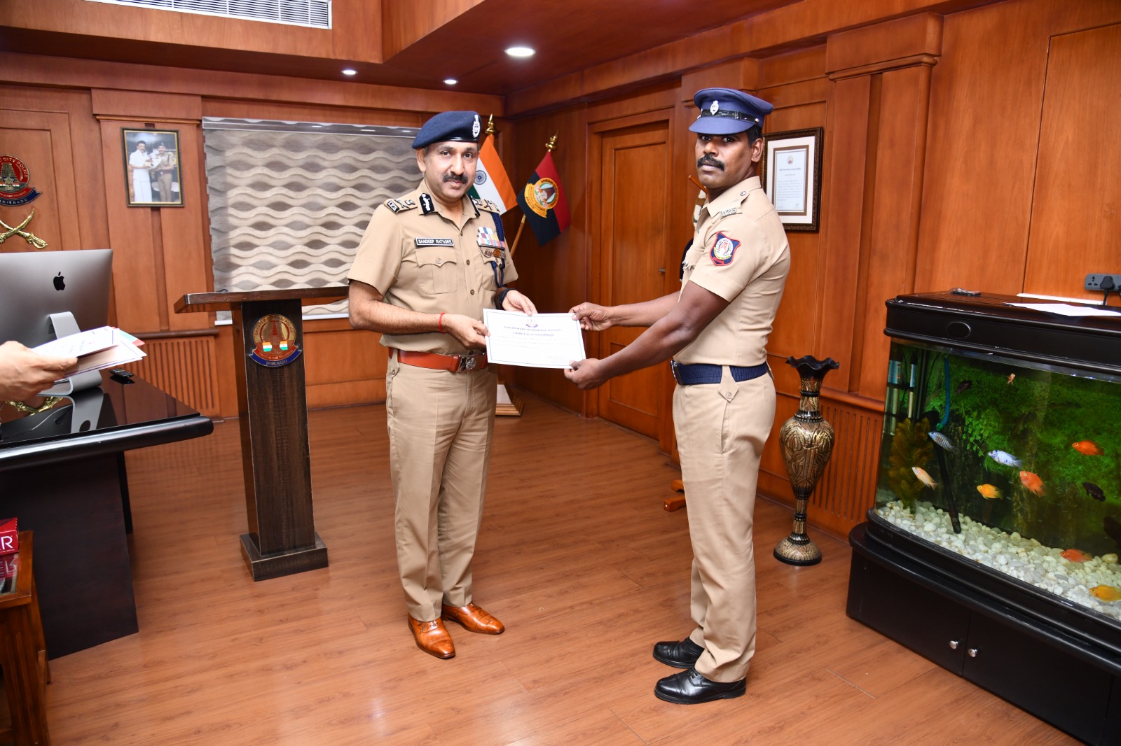 சென்னை பெருநகர காவல் ஆணையாளர் சந்தீப்ராய் ரத்தோர் சிறப்பாக பணிபுரிந்த 24 காவல் அதிகாரிகள் மற்றும் ஆளிநர்களை நேரில் அழைத்து சான்றிதழ்கள் வழங்கி பாராட்டினார்.