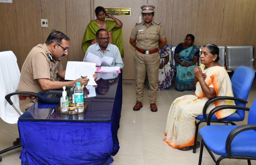 சென்னை நகர போலீஸ் கமிஷனர் சந்தீப்ராய் ரத்தோர் வாரந்தோறும் புதன்கிழமைகளில் பொதுமக்கள் குறை தீர்முகாமில் கலந்து கொண்டு பொதுமக்களின் புகார் மனுக்களை பெற்றுக் கொண்டு, அம்மனுக்கள் மீது விரைந்து விசாரணை மேற்கொண்டு நடவடிக்கை எடுக்க காவல் அதிகாரிகளுக்கு உத்தரவிட்டு வருகிறார். இதில் நேரடியாக வரும் மூத்த குடிமகன்களின் புகார்கள் மீது சம்பந்தப்பட்ட காவல் துணை ஆணையாளர் மூத்த குடிமகன்களின் வீடுகளுக்கு நேரில் சென்று விசாரணை மேற்கொண்டு நடவடிக்கை எடுக்க உத்தரவிட்டு, விரைந்து நடவடிக்கை எடுக்கப்பட்டு வருகிறது.