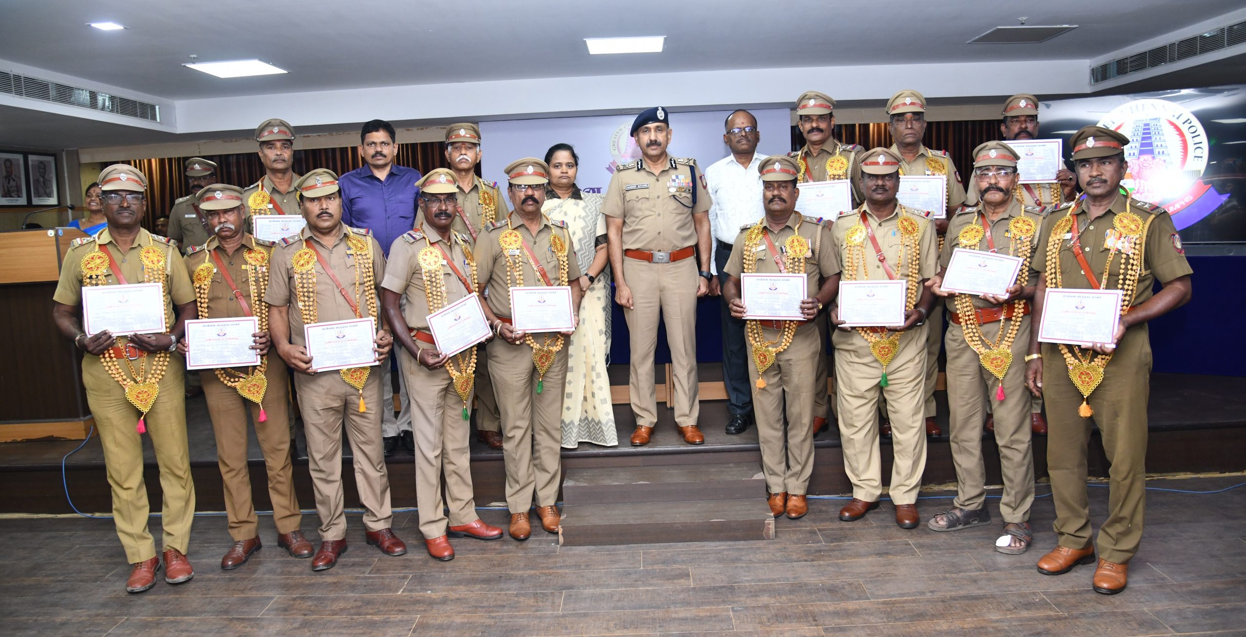 இன்று (31.12.2024) வேப்பேரி, சென்னை பெருநகர காவல் ஆணையரகத்தில் நடைபெற்ற பணி நிறைவு விழாவில், சென்னை நகர போலீஸ் கமிஷனர் சந்தீப்ராய் ரத்தோர் 25 ஆண்டுகள் முதல் 41 ஆண்டுகள் சிறப்பாக பணிபுரிந்ததை பாராட்டி, தமிழக காவல்துறைக்கும், சென்னை பெருநகர காவல்துறைக்கும் பெருமை சேர்த்ததை நினைவு கூர்ந்து, சால்வை மற்றும் மாலை அணிவித்து, சான்றிதழ்கள் வழங்கினார். ஓய்வு பெற்ற காவல் குடும்பத்தினரிடம், காவல்துறைக்கு ஒத்துழைப்பு அளித்தமைக்காக நன்றி தெரிவித்தார். மேலும், ஏதேனும் உதவிகள் தேவைப்பட்டாலோ அல்லது குறைகள் தெரிவிக்க விரும்பினாலோ தன்னை நேரில் சந்தித்து முறையிடலாம் என கமிஷனர் சந்தீப்ராய் ரத்தோர் ஓய்வு பெற்ற காவல் அலுவலகர்களிடம் தெரிவித்தார். இந்நிகழ்ச்சியில், காவல் இணை ஆணையாளர், தலைமையிடம், கயல்விழி, துணை ஆணையாளர்கள் மணிவண்ணன் (தலைமையிடம்), சீனிவாசன் (நிர்வாகம்), காவல் அதிகாரிகள் மற்றும் ஓய்வு பெற்ற காவல் அலுவலர் குடும்பத்தினர் கலந்து கொண்டனர்.