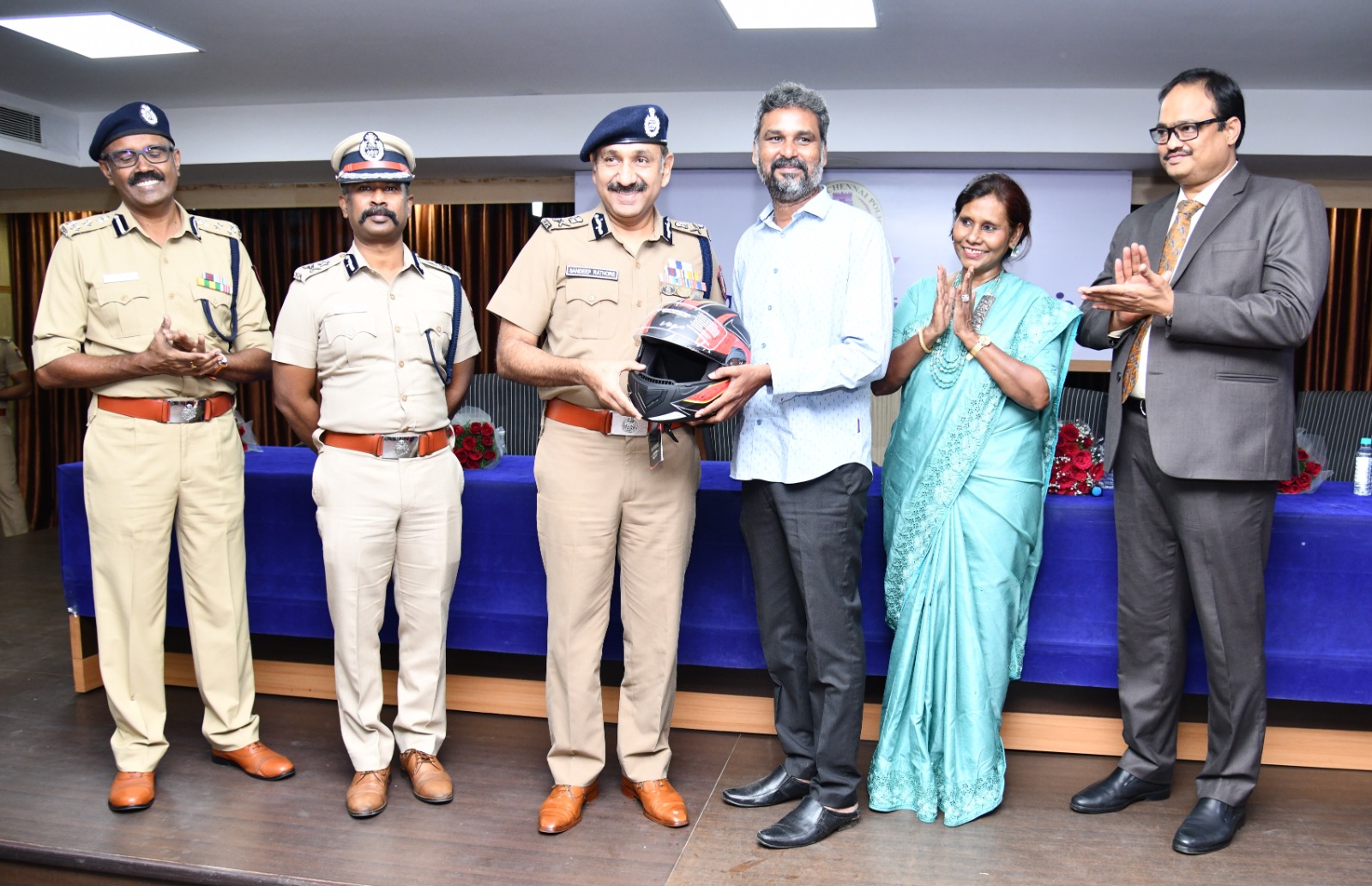 சென்னை பெருநகர காவல் ஆணையாளர் சந்தீப்ராய் ரத்தோர் போக்குவரத்து விழிப்புணர்வு ஏற்படுத்தும் வகையில் பத்திரிகை புகைப்படக்கலைஞர்களுக்கு தலைக்கவசங்களை வழங்கினார்.