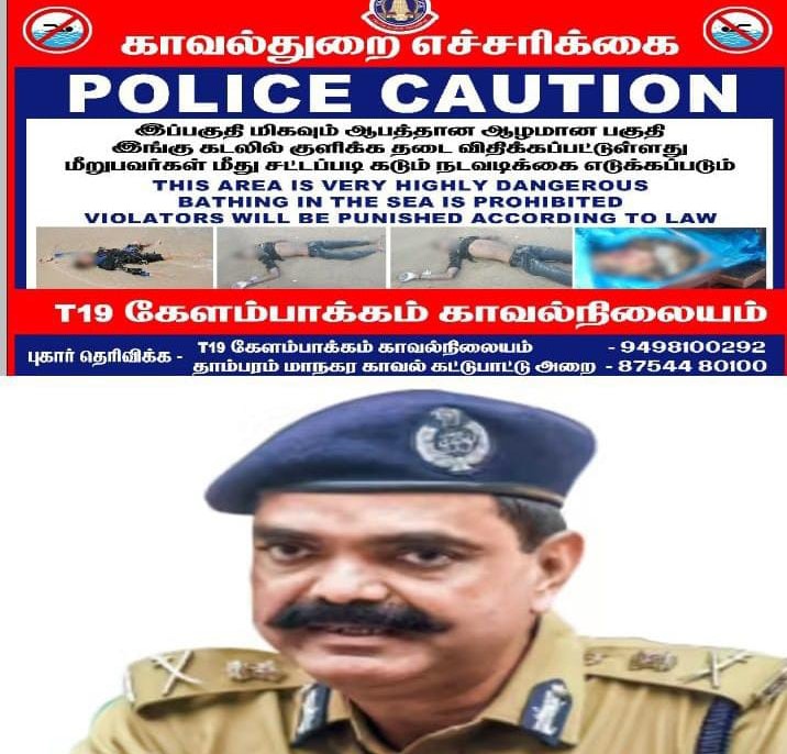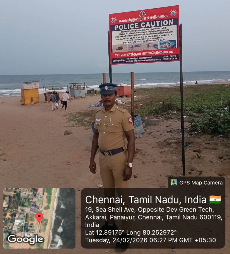 தாம்பரம் மாநகர காவல் எல்லைக்குட்பட்ட, கிழக்கு கடற்கரை சாலை (ECR) பகுதிகளில் உள்ள கடற்கரைகளில் மாணவர்கள் மற்றும் இளைஞர்கள் நீரில் மூழ்கி உயிரிழக்கும் சம்பவங்கள் அவ்வப்போது நடைபெறுகிறது. கடந்த 21.02.26 அன்று, கானத்தூர் கடற்கரை பகுதியில் சுற்றுலா வந்தவர்களில் இருவர் கடல் அலையில் சிக்கி உயிரிழந்துள்ளனர். கடந்த ஓராண்டில் தாம்பரம் மாநகர காவல் எல்லைக்குட்பட்ட கானத்தூர், கோவளம், முட்டுக்காடு, உத்தண்டி, ரெட்டிகுப்பம் மற்றும் நயினார்குப்பம் ஆகிய கடற்கரை பகுதிகளில் 17 பேர் கடலில் மூழ்கி உயிரிழந்துள்ளனர். இதில் பெரும்பாலானோர் இளைஞர்கள் மற்றும் வெளிமாநிலத்திலிருந்து வந்த சுற்றுலாப் பயணிகள். கோவளம் கடற்கரையில் மூன்று மாணவர்கள் மற்றும் ஒரு தனியார் ஊழியர் உட்பட 4 பேரும், புளு பீச் கடற்கரை மற்றும் செம்மஞ்சேரிகுப்பம் பகுதிகளில் 2 பேரும், நயினார் குப்பத்தில், மகாராஷ்டிராவைச் சேர்ந்த 2 பேரும், உத்தண்டியில் 2 பேரும், மேலும் முட்டுக்காடு, ஆலிவ் கடற்கரை, கோல்டன் பீச் மற்றும் கரிக்காட்டுக்குப்பம் ஆகிய பகுதிகளில், மொத்தம் 7 பேர் உயிரிழந்துள்ளதாக பதிவாகியுள்ளது.
