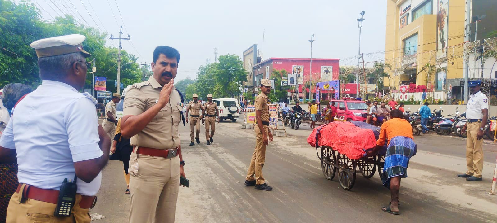தீபாவளி திருநாளை முன்னிட்டு தூத்துக்குடியில் போலீசாரின் பாதுகாப்பு பணிகளை மாவட்ட எஸ்பி டாக்டர் எல். பாலாஜி சரவணன் பார்வையிட்டு ஆய்வு செய்தார்.