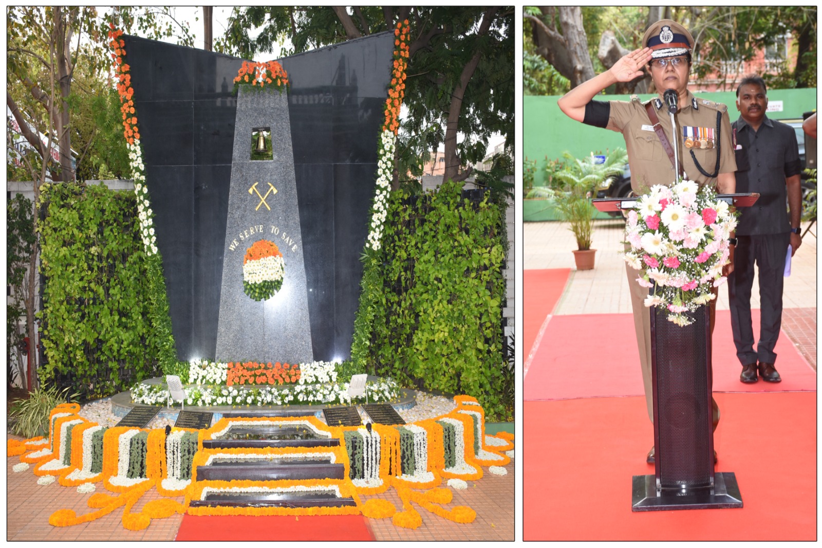 தமிழ்நாடு தீயணைப்பு மற்றும் மீட்புப்பணிகள் துறை டிஜிபி சீமாஅகர்வால் தீ விபத்து மற்றும் மீட்பு பணிகளில் வீரமரணம் அடைந்த 33 தீயணைப்பு வீரர்களுக்கு அஞ்சலி செலுத்தினார். இதில் முதல் முறையாக இந்திய ராணுவப் படையின் Lieutenant General Karanbir Singh Brar, கலந்து கொண்டு வீரமரணம் அடைந்த வீரர்களுக்கு அஞ்சலி செலுத்தினார். இந்நிகழ்ச்சியில் காவல்துறை தலைமை இயக்குநர்கள், முன்னாள் இயக்குநர்கள், பிற துறை அலுவலர்கள் மற்றும் ஓய்வு பெற்ற அலுவலர்கள் கலந்து கொண்டனர்.