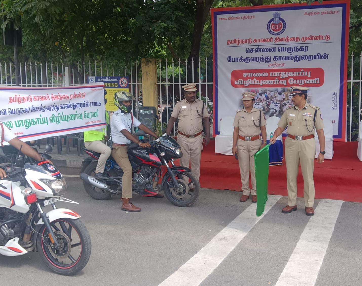 இந்நிகழ்ச்சியில் சென்னை நகர போக்குவரத்து கூடுதல் ஆணையர் கார்த்திகேயன், போக்குவரத்து கிழக்கு துணைக் கமிஷனர் மெகலினா ஐடென் மற்றும் காவல்துறை அதிகாரிகள் கலந்து கொண்டனர்.