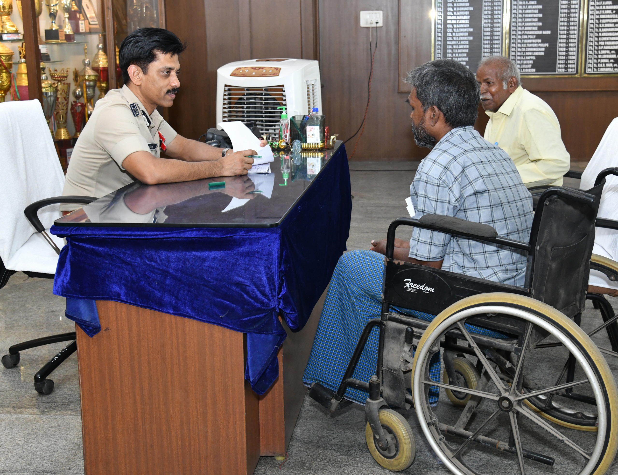 சென்னை நகர போலீஸ் கமி­ஷனர் அருண் இன்று (02.07.2025) காவல் ஆணையரகத்தில் புகார் மனு கொடுக்க வந்த பொதுமக்களிடம் இருந்து 34 புகார் மனுக்களை பெற்று, விரைந்து விசாரணை மேற்கொண்டு நடவடிக்கை மேற்கொள்ள சம்பந்தப்பட்ட காவல் அதிகாரிகளுக்கு உத்தரவிட்டார். இம்முகாமின் போது சென்னை பெருநகர காவல், துணை ஆணையாளர் (நிர்வாகம்) சுப்புலட்சுமி உடன் இருந்தார்.