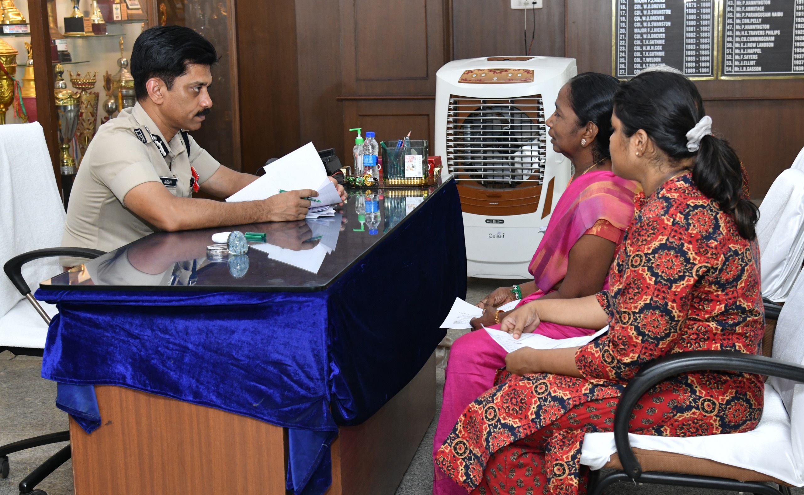 சென்னை நகர போலீ­ஸ் கமி­ஷனர் அலு­வ­ல­கத்தில் நடை­பெற்ற பொதுமக்கள் குறை தீர் முகாமில் கமி­ஷனர் அருண் பொதுமக்களின் 34 புகார் மனுக்களை பெற்று விரைந்து நடவடிக்கை எடுக்க காவல் அதிகாரிகளுக்கு உத்தரவிட்டார்.