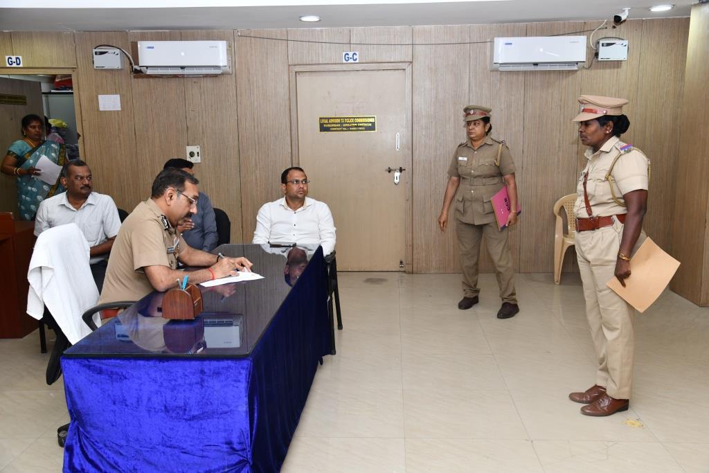 சென்னை பெருநகர காவல் ஆணையாளர் சந்தீப்ராய் ரத்தோர் தலைமையில் சென்னை போலீஸ் கமிஷனர் அலுவலகத்தில் மனுக்களை பெற்று விரைந்து நடவடிக்கை எடுக்க உத்தரவிட்டார்.